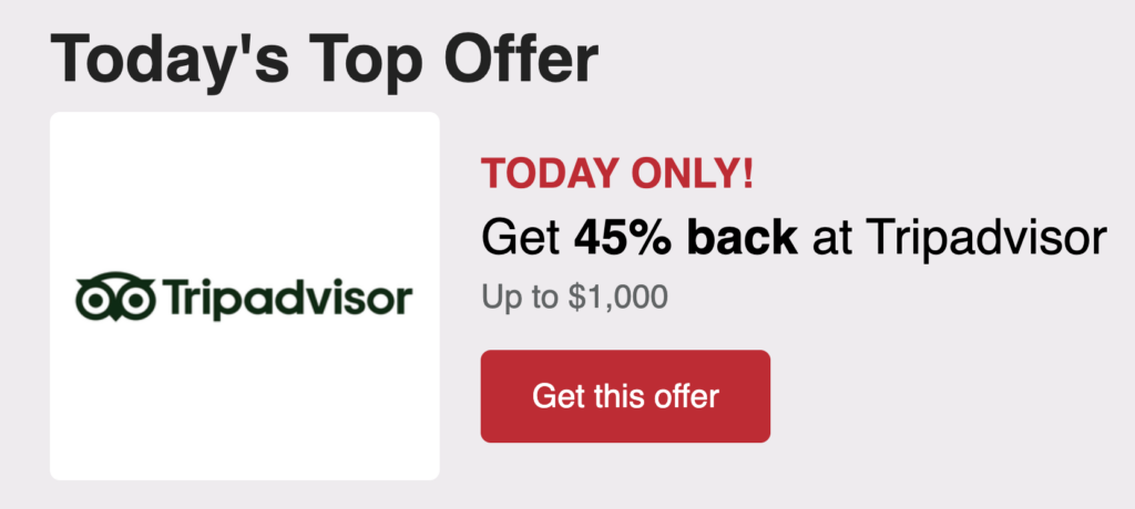 Check your Capital One Shopping homepage for the following offer on TripAdvisor: